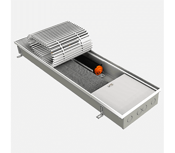 Кроме отопления, подобные конвекторы могут использоваться в качестве кондиционера для охлаждения помещения. Чтобы подключить внутрипольный радиатора со встроенным вентилятором, используют разные по мощности трансформаторы, они поставляются отдельно от комплектации конвектора. Также такой конвектор может быть укомплектован защитной декоративной решеткой.