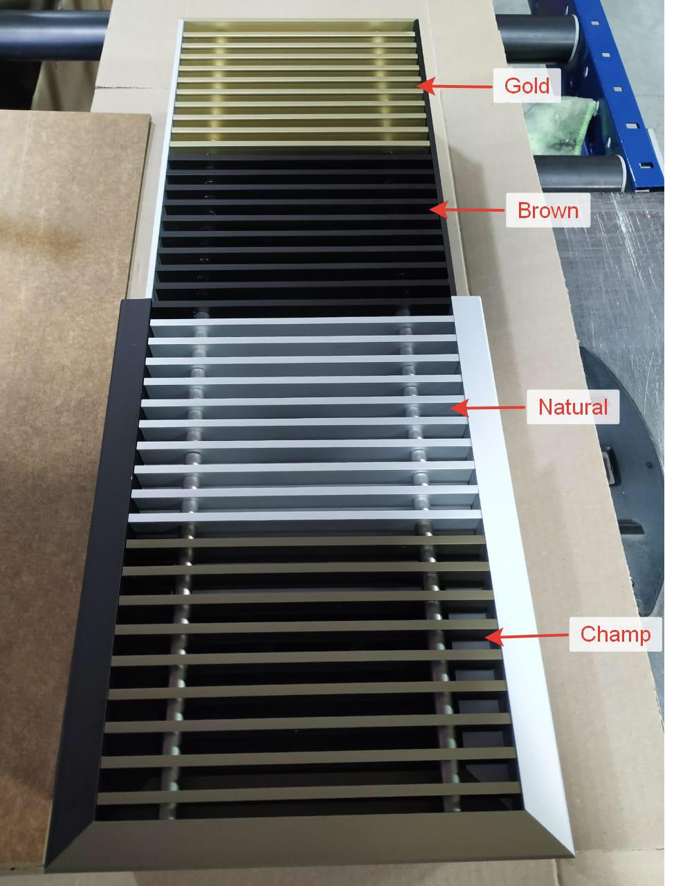 Алюминиевые решетки - стандартные цвета: Металик, Золото, Темно-Коричневый, Шампань, Черный(+20%).