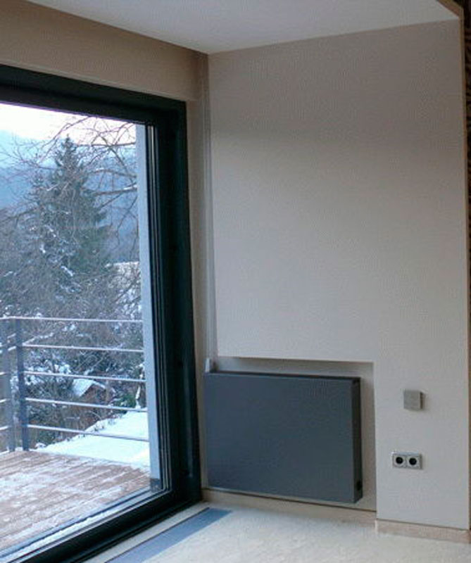 Благодаря оптимальному сочетанию конвекции и излучения, достигается равномерное распределение температуры по всему помещению. При температуре теплоносителя 90ºС максимальная температура поверхности навесных панелей Strada составляет менее 43ºС, что полностью предотвращает ожоги при контакте. Такие конвекторы можно ставить в непосредственной близости от электронных приборов, кожаной и деревянной мебели.