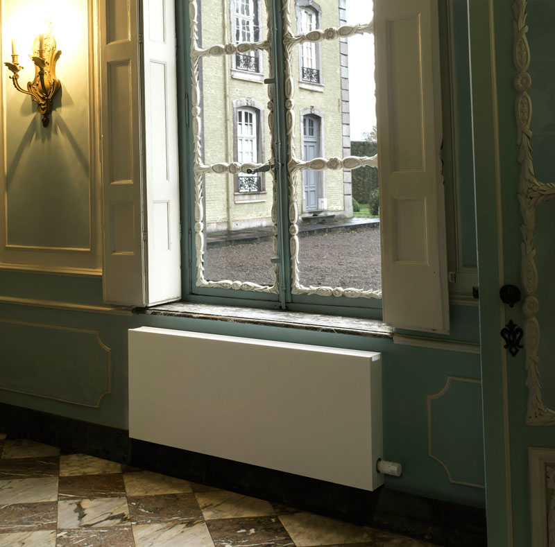 Конвектор Strada состоит из медно-алюминиевого теплообменника, не поддающегося коррозии, а также стальных навесных панелей. Навесные панели можно легко снять и повесить обратно без специального оборудования. Вертикальные линии алюминиевой решетки и гладкая передняя панель подчеркивают типичную для него силу.