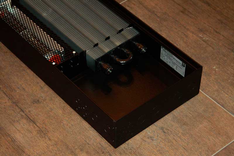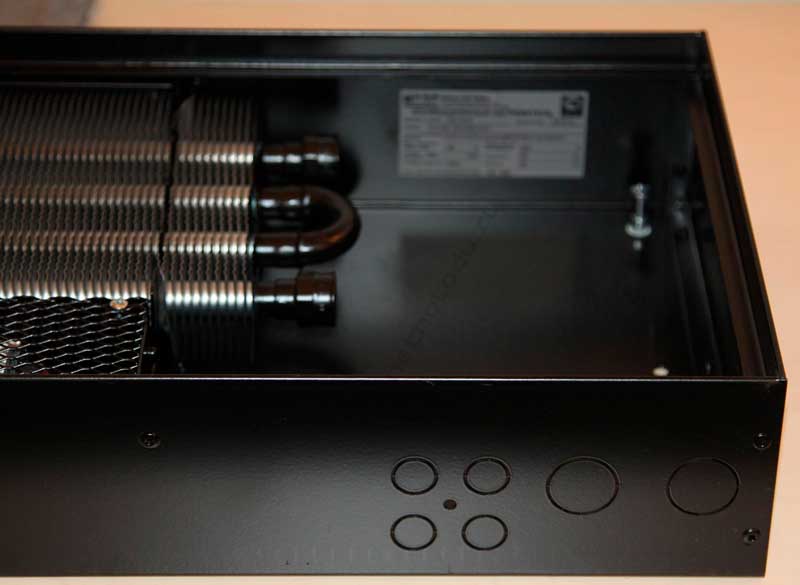 Тепловой комфорт в конвекторе IMP Klima TKV значительно выше, в сравнении с климатическими устройствами естественной конвекции. Агрегат можно установить поблизости оконного проема или дверей. Корпус конвектора изготавливается из оцинкованной стали, чаще всего он черного цвета, так как покрыт порошковым напылением. Есть возможность индивидуального заказа длины конвектора, в пределах 800-4950мм. Если в радиаторе будет слишком большой корпус, его изготавливают из нескольких частей, которые при установке буду собираться в одно целое.