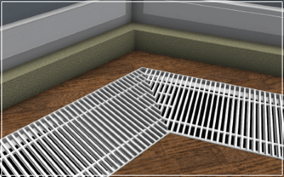 Корпус внутрипольного конвектора создается из материала повышенной прочности. Этот компонент отопительной системы выполняет защитную функцию, продляя срок эксплуатации отопительной системы.