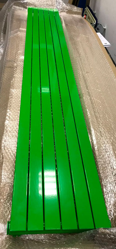 Вертикальный радиатор Соло изготовлен из стального прямоугольного трубного проката с сечением 40*10 мм. При этом, широкой стороной они соединены с горизонтально расположенными коллекторными трубами. В связи с этим на данных моделях предусмотрено боковое подключение.