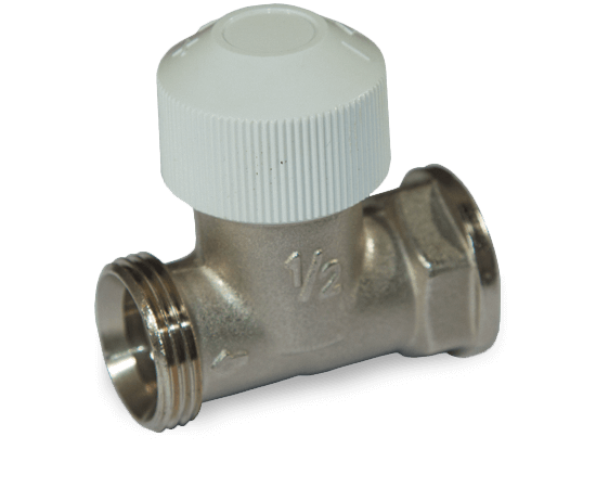 - вентили на подающую линию DN15, G3/4" с защитным колпачком, корпус из латуни с нержавеющим стальным шпинделем и двойным концевым уплотнением, возможно использование для для двухтрубных систем - k vs =1.35 и для однотрубных - k vs =1.8. Используются для конвекторов с подключением “сбоку” без встроенного вентиля.